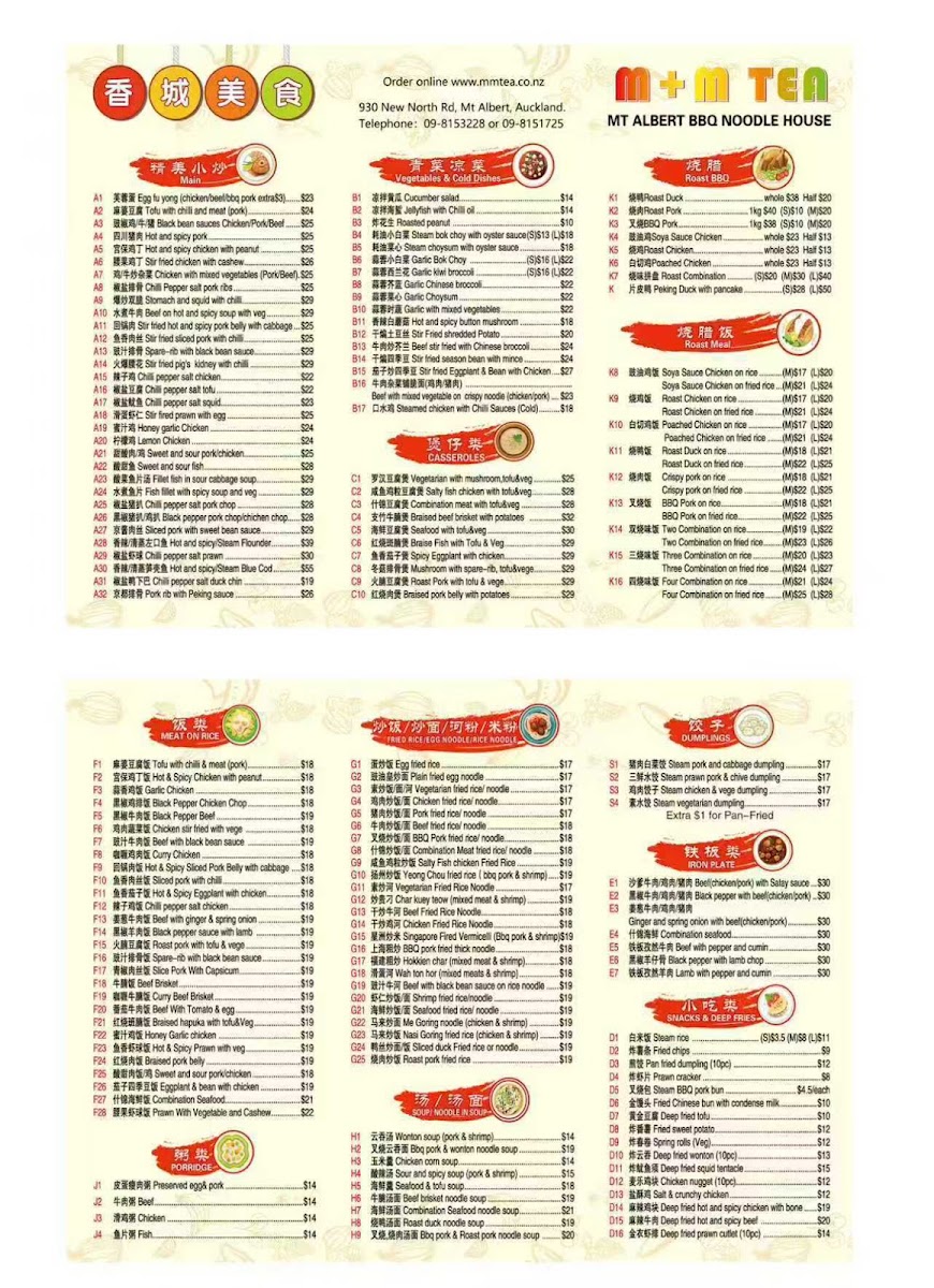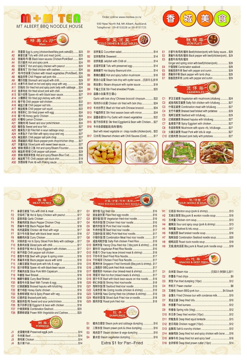 Mt Albert BBQ Noodle House Menu